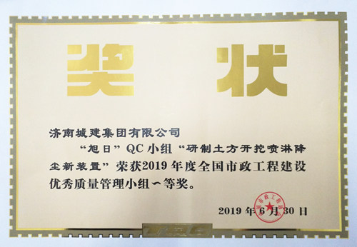 集團“旭日”QC小組《研制土方開挖噴淋降塵新裝置》榮獲“2019年度全國市政工程建設(shè)優(yōu)秀質(zhì)量管理小組一等獎”
