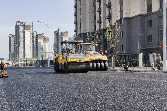 濟南起步區(qū)總部經(jīng)濟產(chǎn)業(yè)園區(qū)四期安置東區(qū)項目完成保交房區(qū)域瀝青面層攤鋪作業(yè)