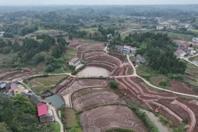 四川內(nèi)江東興區(qū)2025年高標準農(nóng)田項目全速推進田塊整治與灌排設(shè)施鋪設(shè)
