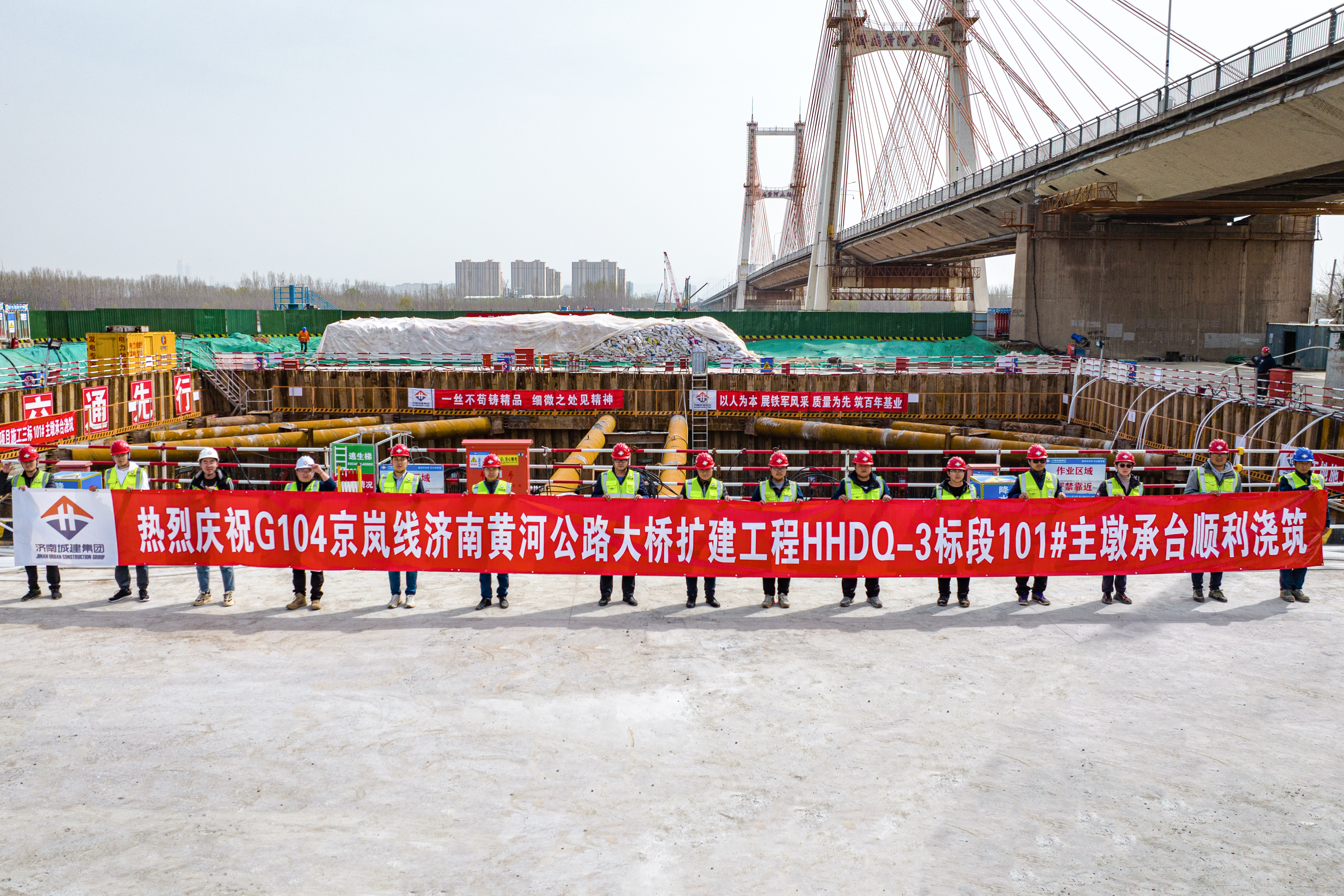 伴隨著滔滔的黃河水聲,集團(tuán)承建的G104濟(jì)南黃河公路大橋擴(kuò)建工程正在如火如荼地展開。作為跨黃橋隧建設(shè)主力軍,集團(tuán)深入貫徹習(xí)近平總書記重要指示要求,認(rèn)真落實(shí)全省2022年工作動員會精神和市委、市政府“強(qiáng)省會”工作部署,賡續(xù)“團(tuán)結(jié)、務(wù)實(shí)、開拓、拼搏、奉獻(xiàn)”的黃河精神,咬定目標(biāo),只爭朝夕,擔(dān)當(dāng)實(shí)干,聚力攻堅(jiān),全力以赴推進(jìn)G104濟(jì)南黃河公路大橋擴(kuò)建工程建設(shè),快速掀起跨黃橋隧建設(shè)新高潮,為促進(jìn)起步區(qū)經(jīng)濟(jì)社會發(fā)展、助推濟(jì)南加速邁向“黃河時(shí)代”貢獻(xiàn)力量。